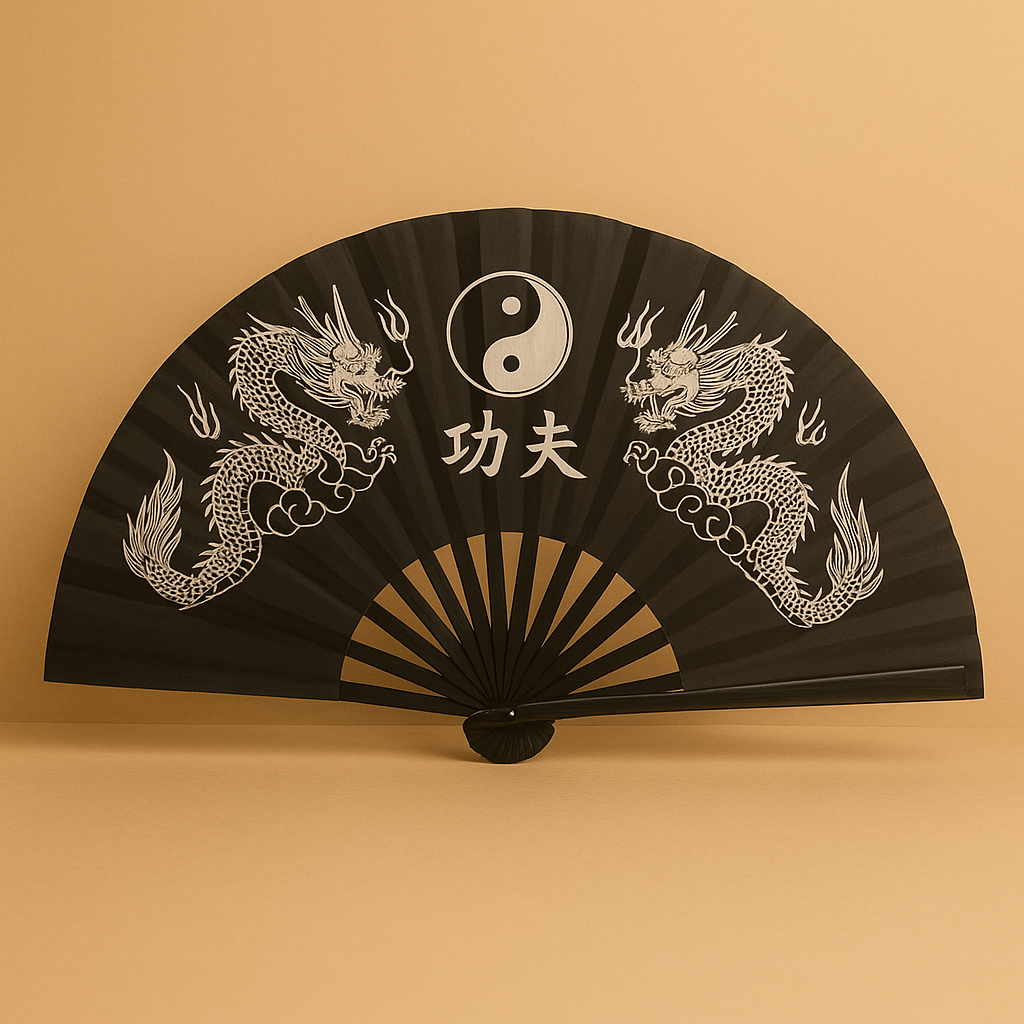 Leque grande e resistente. Além de belos e excêntricos, os leques servem para guiar a energia de um ambiente na direção correta, segundo o Feng Shui. As cores, caligrafias e as imagens impressas transmitem vibrações e significados, como por exemplo: sorte, prosperidade, vida longa, saúde e sucesso.